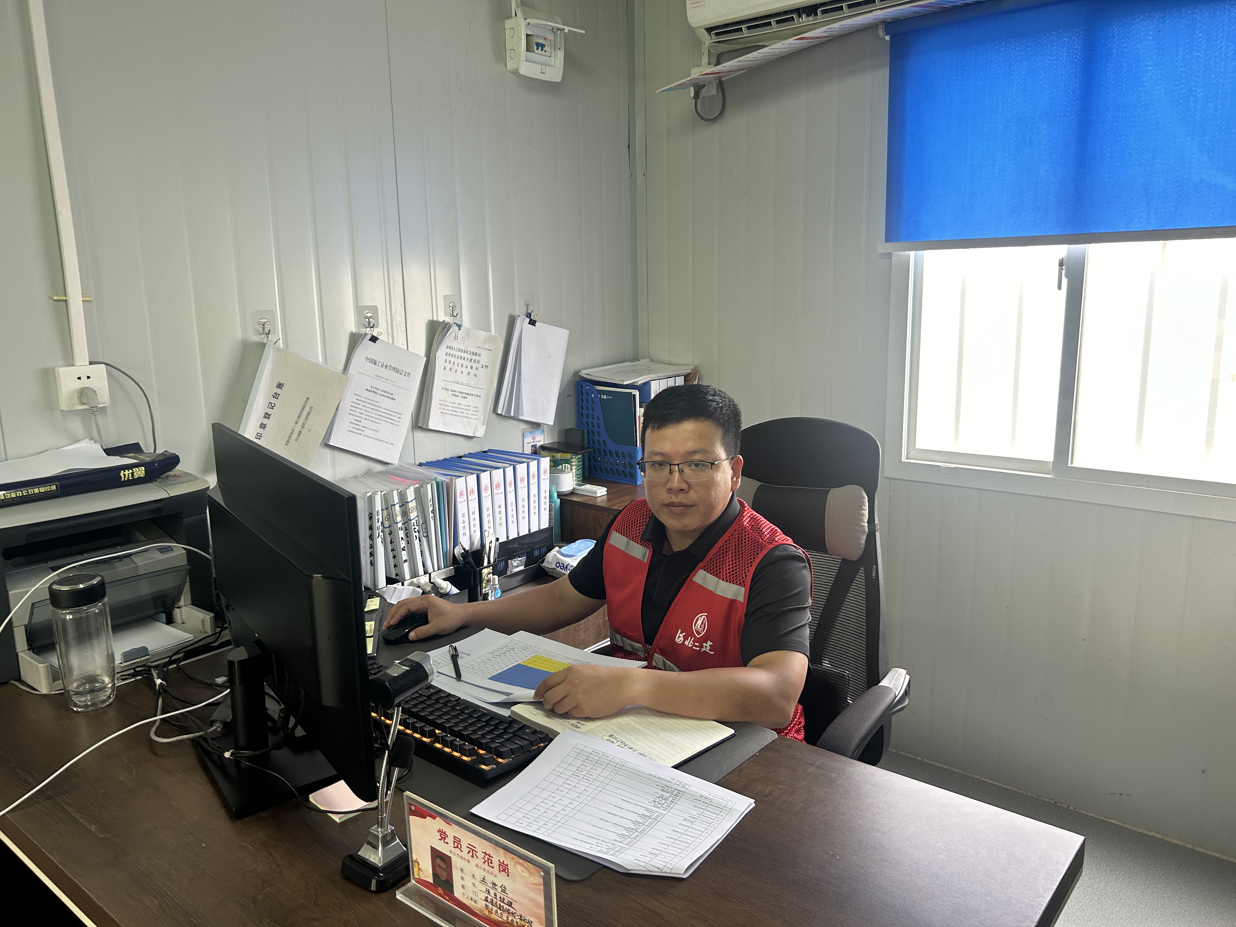 他来自河北鹿泉,30多岁年纪,戴副眼镜,文质彬彬,一介书生模样。他就是河北二建三分公司龙港水厂项目经理王世佳,也是公司“劳动模范”之一。