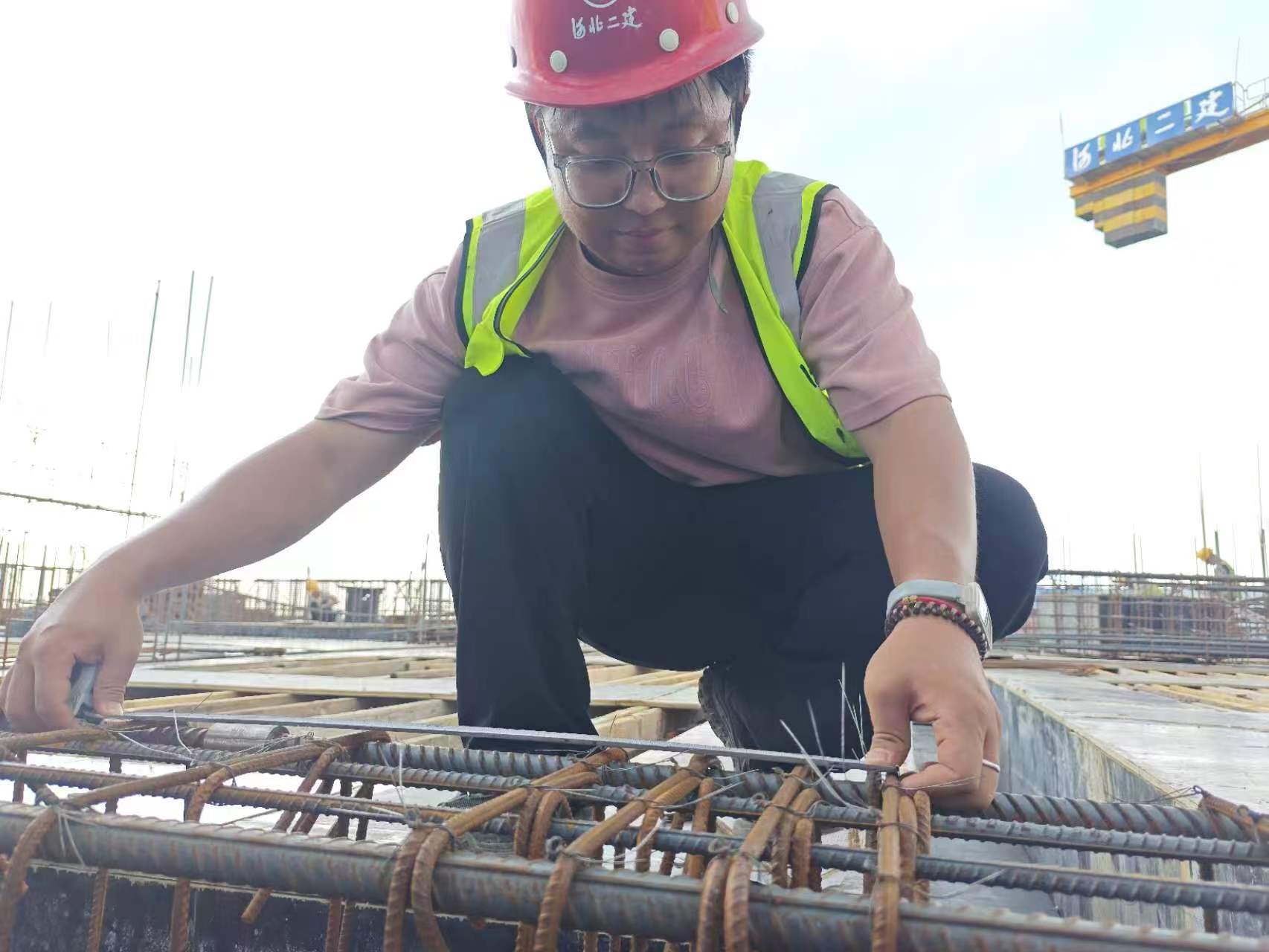 为了能够更好地提升自己,他还加入了测量小组。混凝土浇筑完后4个小时就要测设建筑物主轴线,为了不影响进度,有时凌晨三四点,天还黑着,他们带着头灯进行测量;有时中午一两点,顶着太阳,他们在烫手的顶板进行测量。不管什么时间,只要需要他,他都会坚守在一线,把任务高效、高质量地完成。