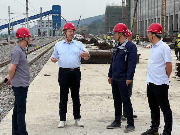 正值中午时分,唐志强不顾天气炎热,直奔施工现场。他实地查看正在进行库顶上部结构施工的装车仓,对滑模外观质量给予肯定,针对后续工程,强调要细化节点、加快施工,避免前紧后松问题。装车仓周边有多个转载点框架,结合这些框架“又高又瘦”的特点,唐志强反复叮嘱项目部注意施工安全,要求重点做好操作面的安全防护,并从这类工程的承接策划、成本测算等方面与大家进行交流探讨。项目施工区域面积大、房号分散,唐志强边走边看、边看边问、边问边指导,“汽车受煤坑什么时间完工?”“基坑防护喷浆是打锚杆吗?”……从方案论证、安全防护、施工组织等方面有重点地进行指导。贮焦槽方仓滑模已经结束,唐志强与同一现场其他单位的方仓滑模进行对比,充分肯定了项目部在质量管控上的成果。唐志强进一步询问贮焦槽剩余工作内容,了解到库顶板施工有独特之处,需要先安装贝雷架,在贝雷架上面搭设承重架体后再施工库顶板,他叮嘱项目经理务必做好方案论证,保证安全施工。在巡查完1#筛焦楼和3#4#转运站后,结合这些高框架多层不设顶板的结构特点,唐志强从周转工具占用量大的角度分析,强调要多个子项统筹推进,科学合理组织施工,千方百计加快进度,有效降低成本。